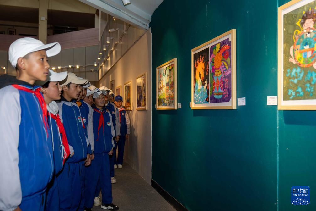 5月20日,在西藏自治區群藝館,觀眾在啟動儀式上參觀中學生繪畫作品展。新華社記者 旦增尼瑪曲珠 攝