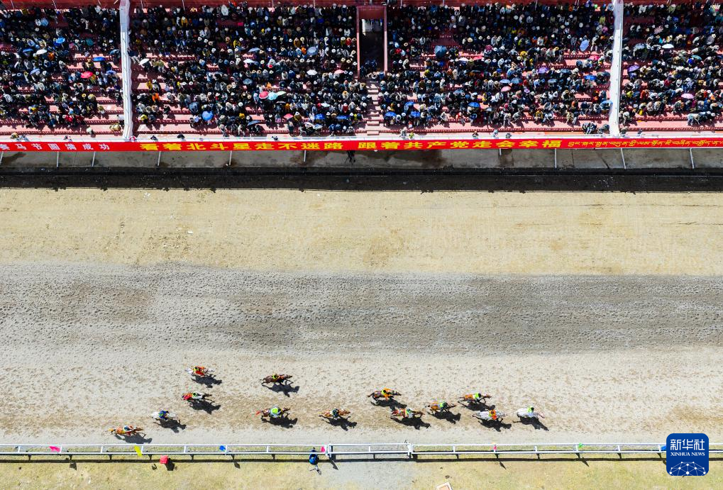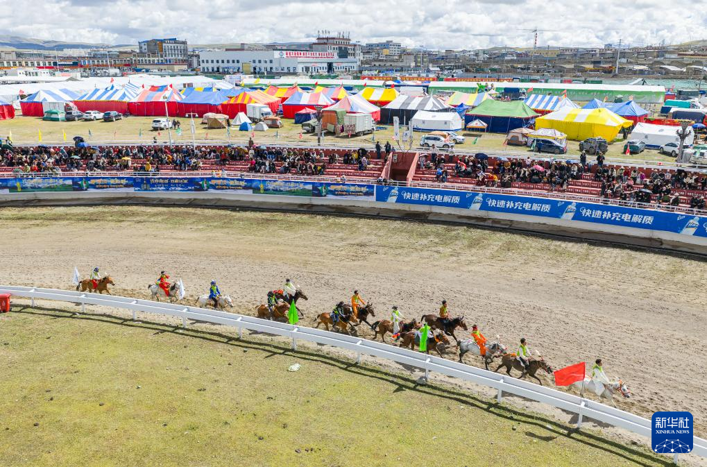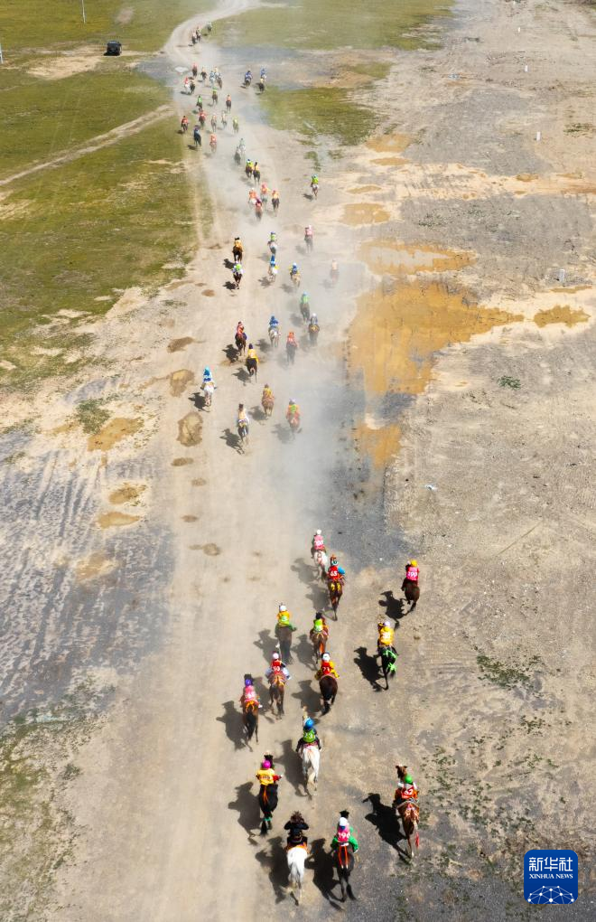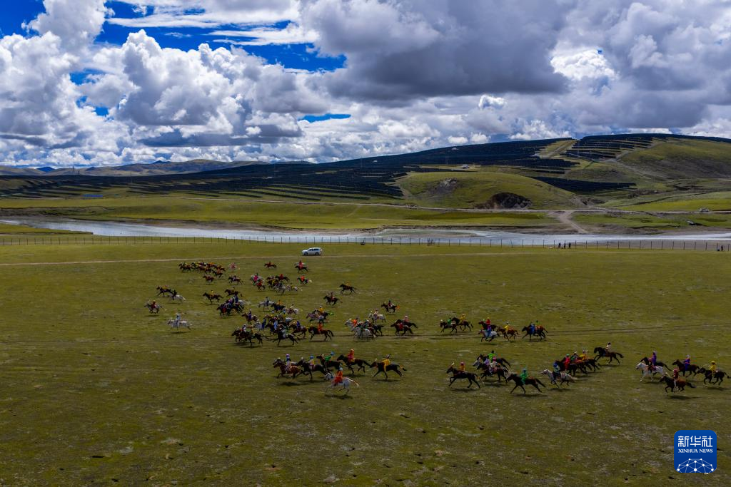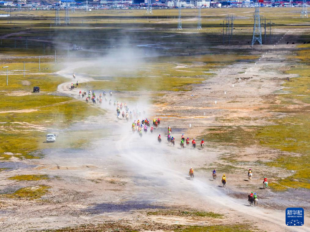 這是9月6日拍攝的恰青賽馬節比賽現場(無人機照片)。新華社記者 丁增尼達 攝