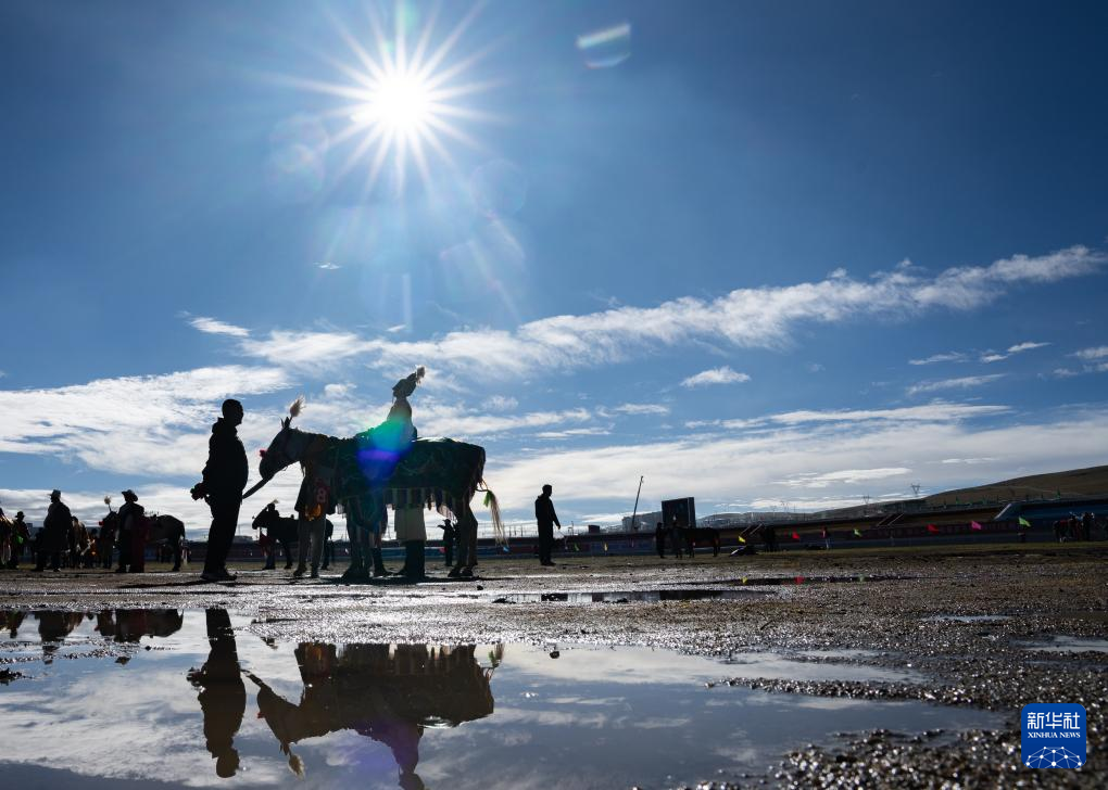 9月7日,騎手在傳統大跑項目前等待開賽。新華社記者 丁增尼達 攝