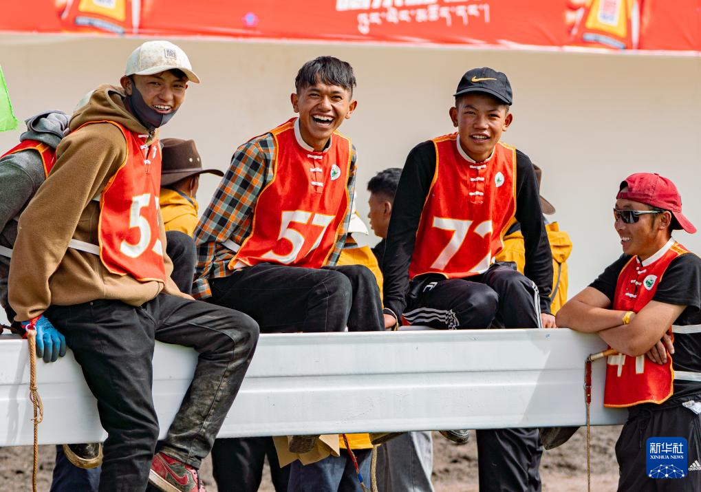 9月6日,在恰青賽馬節比賽現場,騎手們在等候比賽開始。新華社記者 丁增尼達 攝