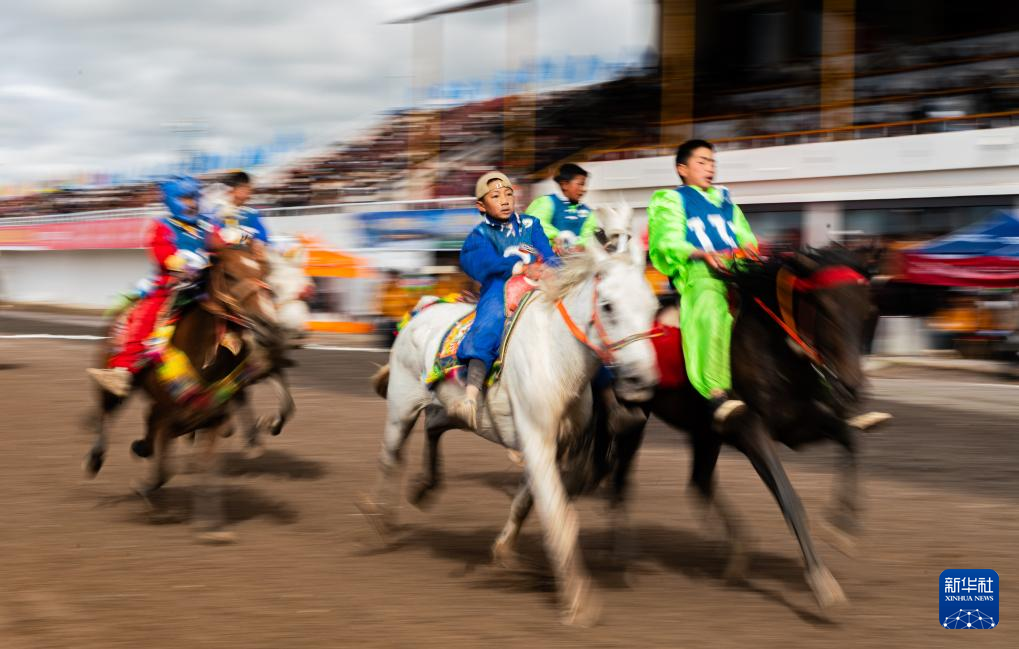 9月7日,騎手們在傳統大跑項目中馳騁。新華社記者 丁增尼達 攝