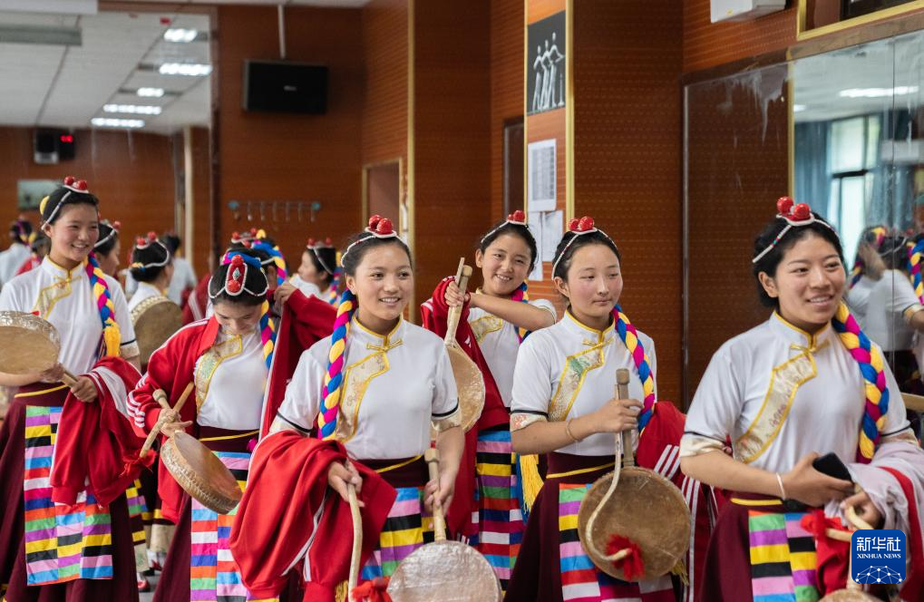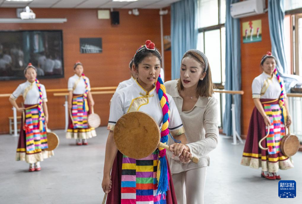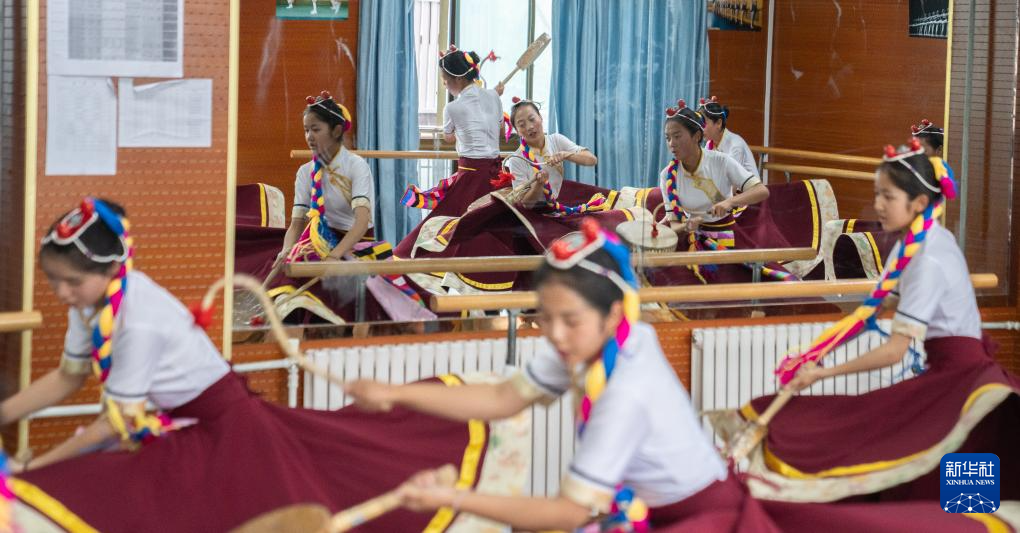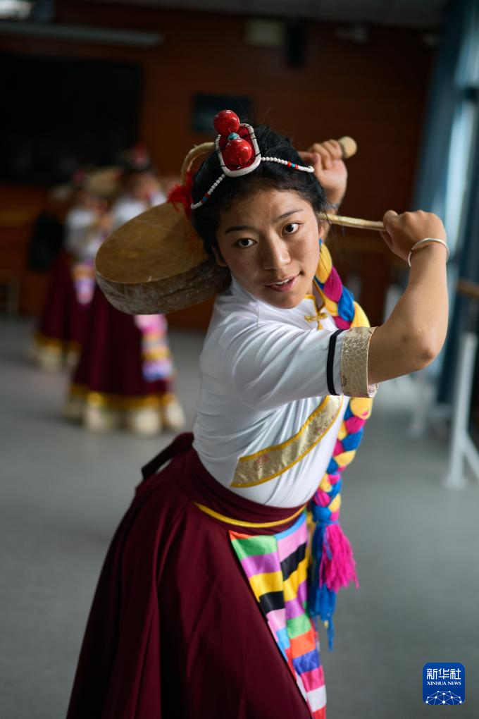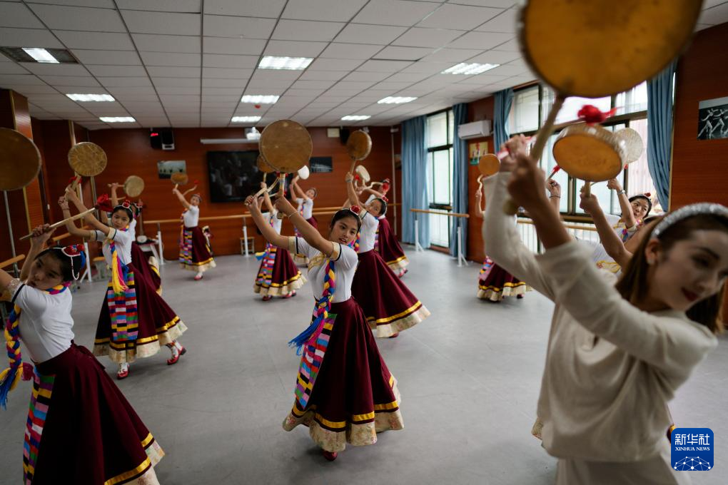 9月9日,在拉薩市第二中等職業技術學校,孩子們在練習熱巴舞。新華社記者 丁增尼達 攝