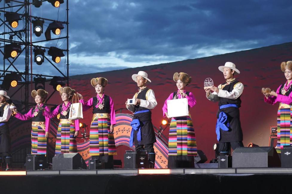 開幕式以“賞沙丘公園·看日月星辰”音樂季為開篇,在煙花秀、燈光秀下拉開帷幕。現場氣氛熱烈,民族歌舞、非遺藏戲等特色節目輪番上演,生動展現扎囊縣深厚的歷史文化底蘊。