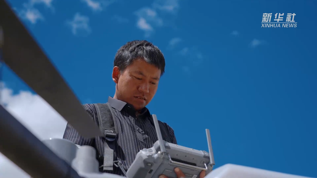 次旺桑珠是西藏日喀則市桑珠孜區甲措雄鄉聰堆村農機合作社負責人,2021年,桑珠孜區組織無人機駕駛執照統一培訓考試,他成為村裏第一批專業無人機操作員。