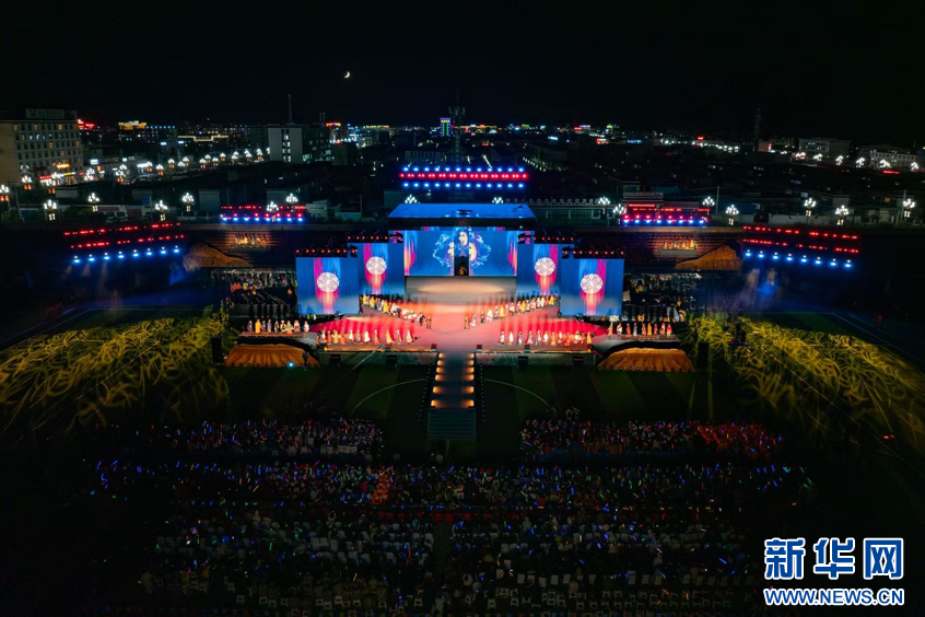 圖為第九屆象雄文化旅游節開幕式現場(無人機照片,9月26日攝)。新華網 旦增努布攝