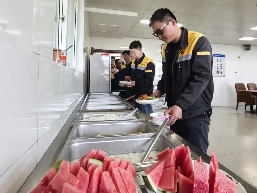 “這裡水質達不到飲用標準,公司就從最近給水點定期給我們配送純凈水。”談起生活保障時車間負責人説。唐古拉車間處在“兩頭遠”的尷尬地理位置,保障職工健康飲食是重中之重。為解決這一現實問題,公司專門配備一輛恒溫運輸車,每隔2~3天從格爾木採購新鮮瓜果蔬菜,按需配送至沿線每個偏遠駐地。此外,驛站休息補給區微波爐、電磁爐等設備24小時可用,並通過進一步優化食堂菜譜,職工吃上熱飯熱菜的同時,膳食質量得以顯著提升,讓職工在極端環境中也能感受到“家”的溫暖。