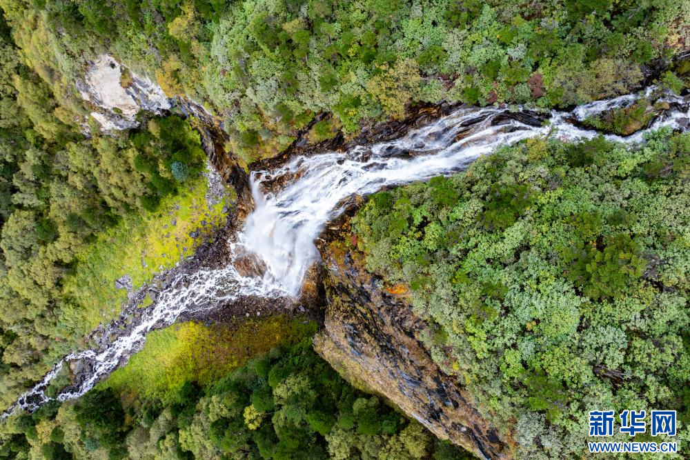 10月10日拍攝的拉郊瀑布(無人機照片)。新華網 旦增努布 攝