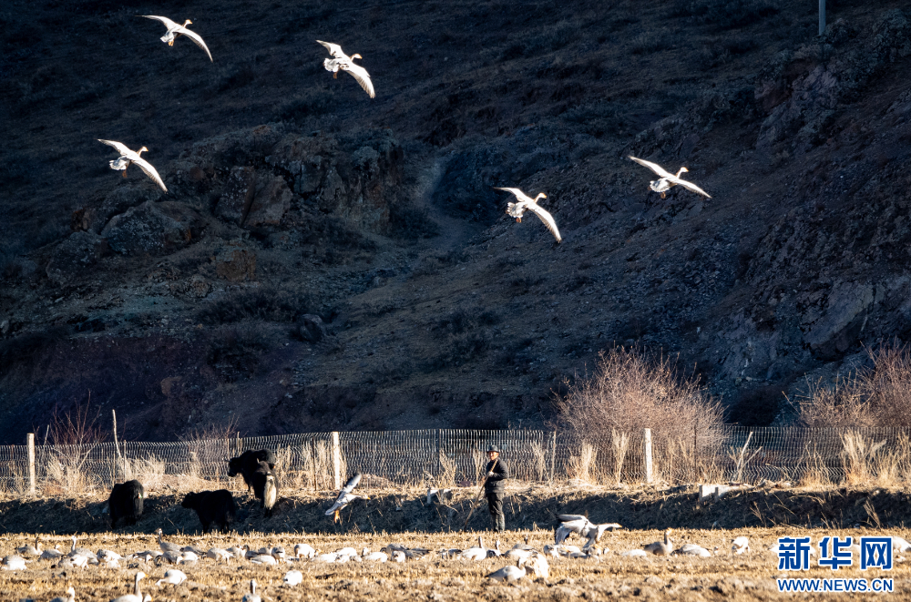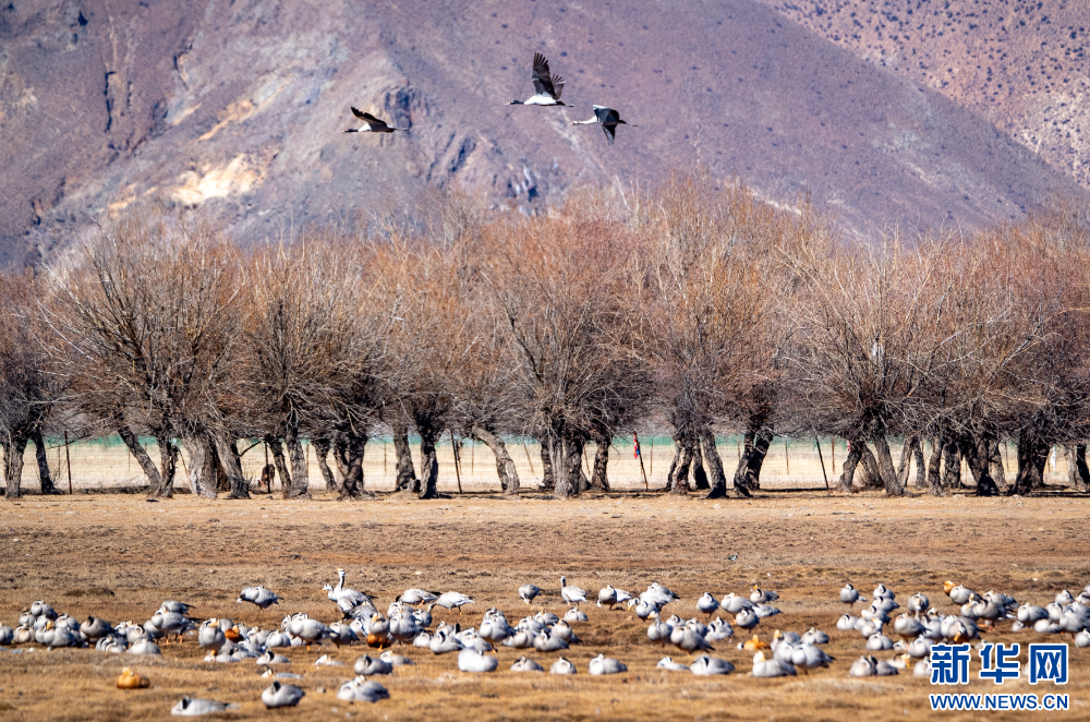 這是11月26日在西藏拉薩市林周縣境內拍攝的候鳥。新華網 旦增努布 攝
