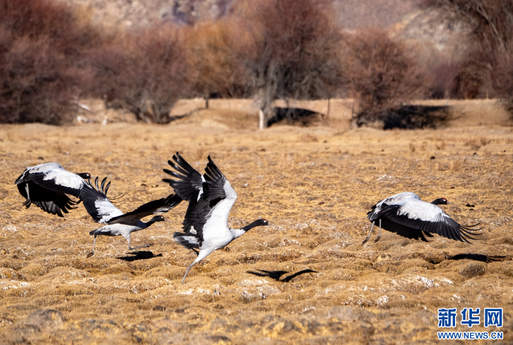 這是11月26日在西藏拉薩市林周縣境內拍攝的黑頸鶴。新華網 旦增努布 攝