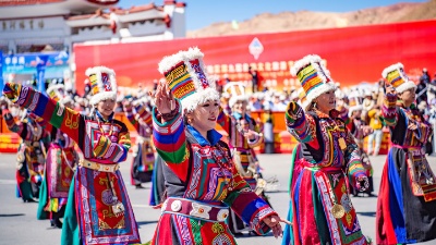 首屆“天上阿里・裳映古韻”民族服飾秀在西藏阿里地區噶爾縣獅泉河體育場舉辦。