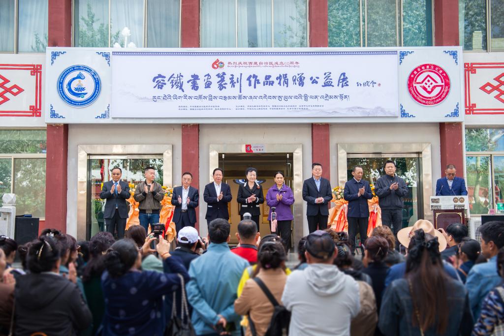 18日,由西藏自治區黨委宣傳部指導,中國文聯書法藝術中心、西藏自治區文化和旅游廳、北京市文學藝術界聯合會共同主辦的“慶祝西藏自治區成立60周年——容鐵書畫篆刻作品捐贈公益展”在西藏群眾藝術館舉行。