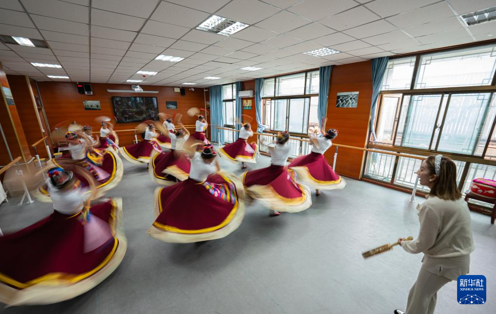 鼓點鏗鏘,彩袖飛揚。拉薩市第二中等職業技術學校的舞蹈教室內,十幾名孩子翩然跳起熱巴舞,孩子們踮腳旋轉時裙擺與彩辮翻飛,舒展而充滿力量。