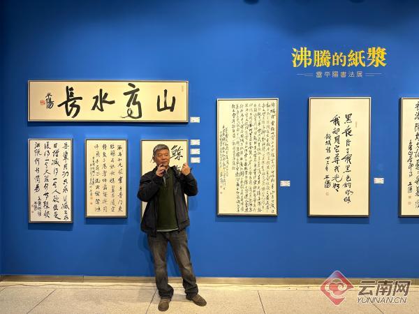 “雷平陽作為一名詩人已經在全國廣為人知,以書法家的面目示人卻是剛剛開始。詩人與書法與人生這個關係很有意義。今天這琳瑯滿目的展品,是詩人以書法家的形式展示給我們的他的另外一面才情和人生。”雲南省書法家協會副主席李軼説。12月2日,“沸騰的紙漿”——雷平陽書法展在昆明市書林街彩雲裏藝術中心開展。