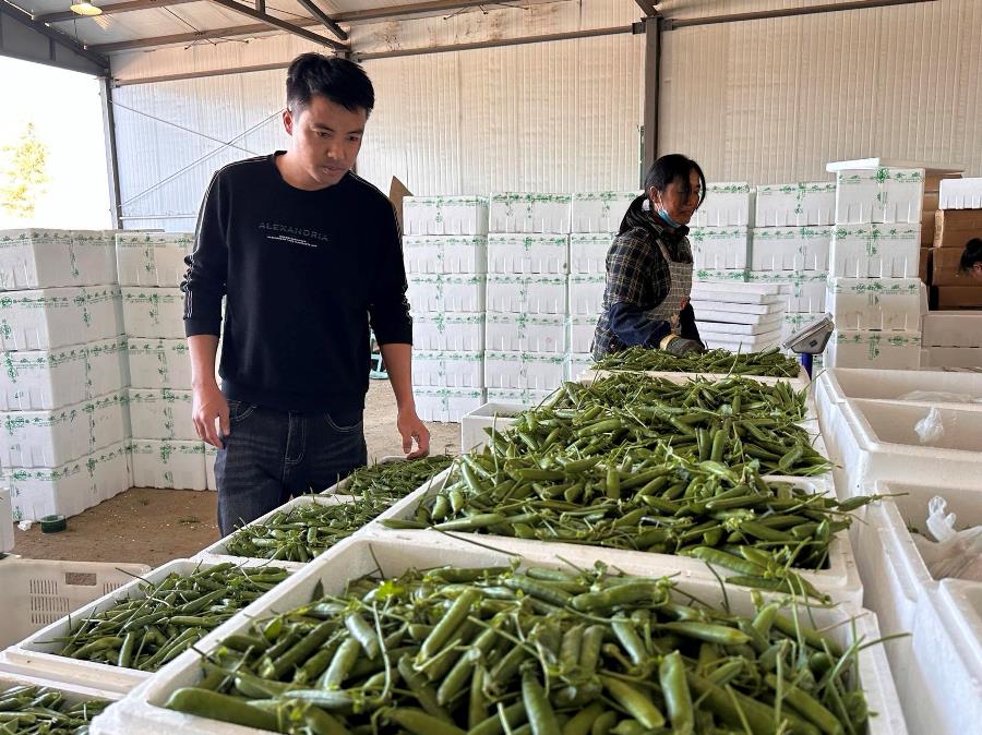 施甸海拔高、日照時間長,氣候十分適宜豌豆生長,種植出來的豌豆顆粒飽滿、品質上乘,一上市便吸引了外地商販前來收購。“我們去年12月9日開始發第一車青豌豆,每公斤收購價格在14元左右,隨着青豌豆成熟量增大,現在價格保持在10元左右一公斤,每天收青豌豆20噸左右,主要發往長沙。”順發農業科技(雲南)有限公司收購代理商楊恒彪&&,他既是豌豆收購代理商,又是豆農、煙農,2023年他種了50畝烤煙,收入27萬餘元。煙後種植10畝青豌豆、10畝青蠶豆,預計收入10多萬元。