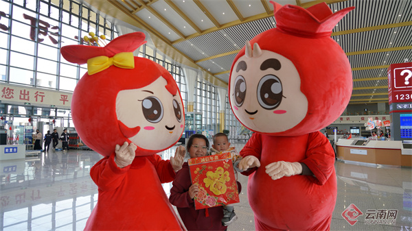笑辭舊歲,喜迎新春。連日來,雲南紅河哈尼族彝族自治州蒙自市,喜迎龍年送“六福”新時代文明實踐志願服務活動豐富多彩,城市吉祥物“阿福”“阿喜”送“福”、“接站”的溫馨場景再次把弘揚傳統文化、樂享美好生活的喜慶氛圍推向高潮。