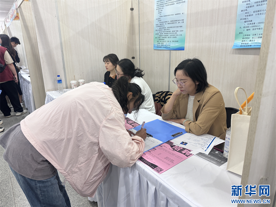 求職者填寫求職信息(5月28日攝)。新華網發(柴靜 攝)