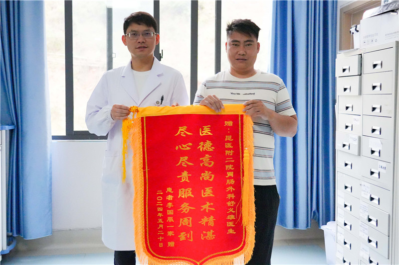 今年72歲的李先生因患胃癌長期飽受病痛折磨,得知瀘水市醫院有昆明來的專家,便前來尋求幫助。舒義雄評估了他的身體狀況,並制定了手術治療方案,成功為其實施了胃癌治療手術。“謝謝舒醫生,是您給了我父親第二次生命。”李先生的兒子在手術後手捧錦旗,向舒義雄表達了一家人的感激之情。