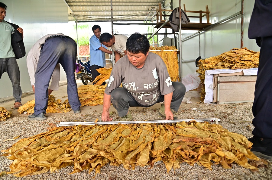煙農正在整理烤煙(7月3日攝)。郭康 攝