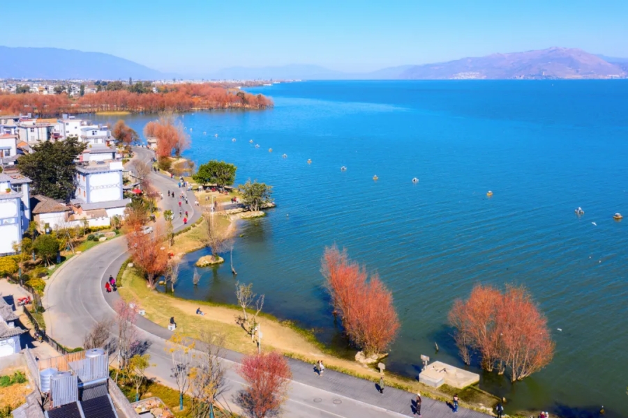 全長129公里的洱海生態廊道,宛如一條銀帶環繞在洱海邊,將沿岸各具特色的白族傳統村莊、濕地、景觀等,形成了一道道靚麗的風景線。