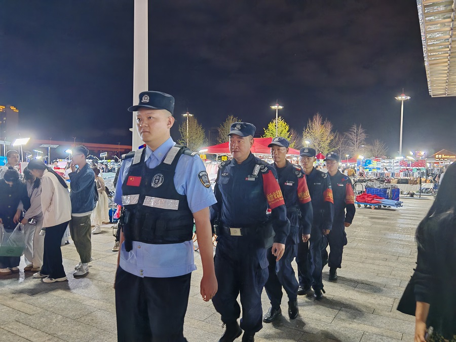 “羅維工作站”巡邏小分隊加強對俊發·新螺螄灣國際商貿城片區夜市的治安管理(資料圖)。