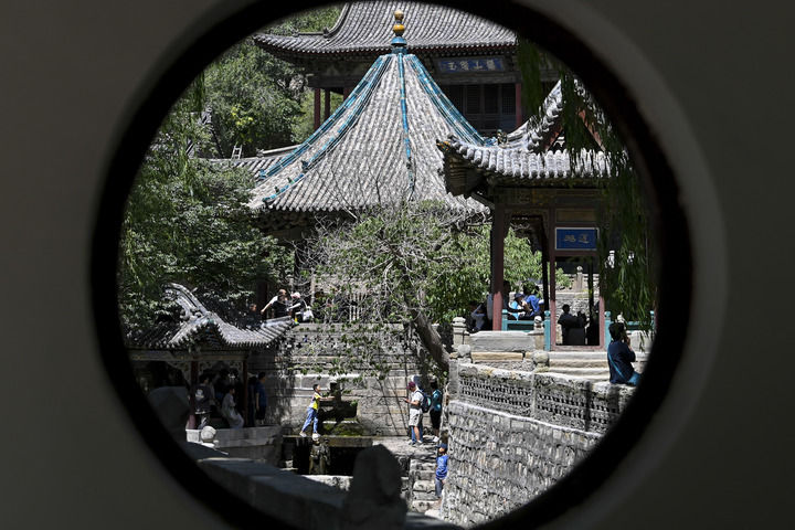 游客參觀晉祠聖母殿(2023年7月4日攝)。