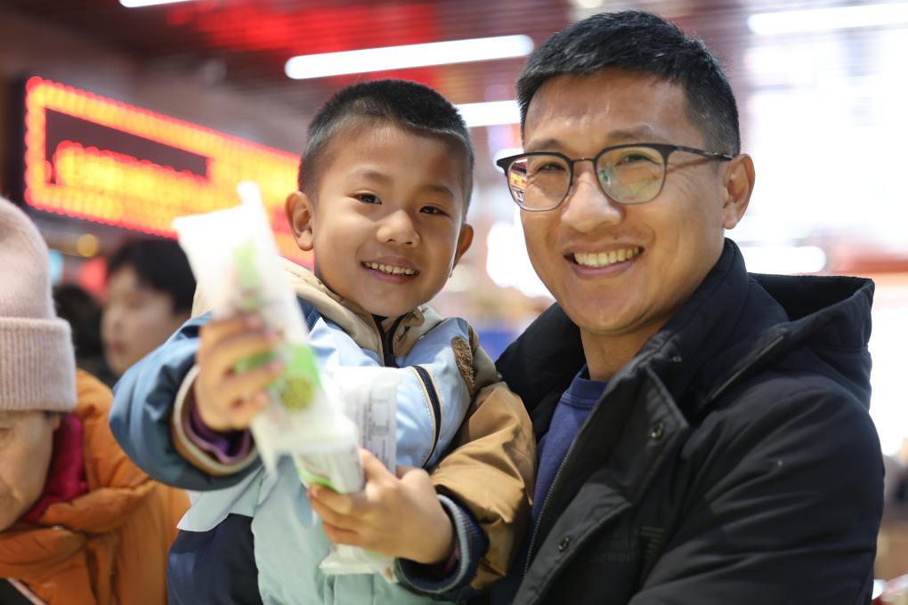 正在選購的李鴻超一家展示麻花。郝傑 攝(新華社發)