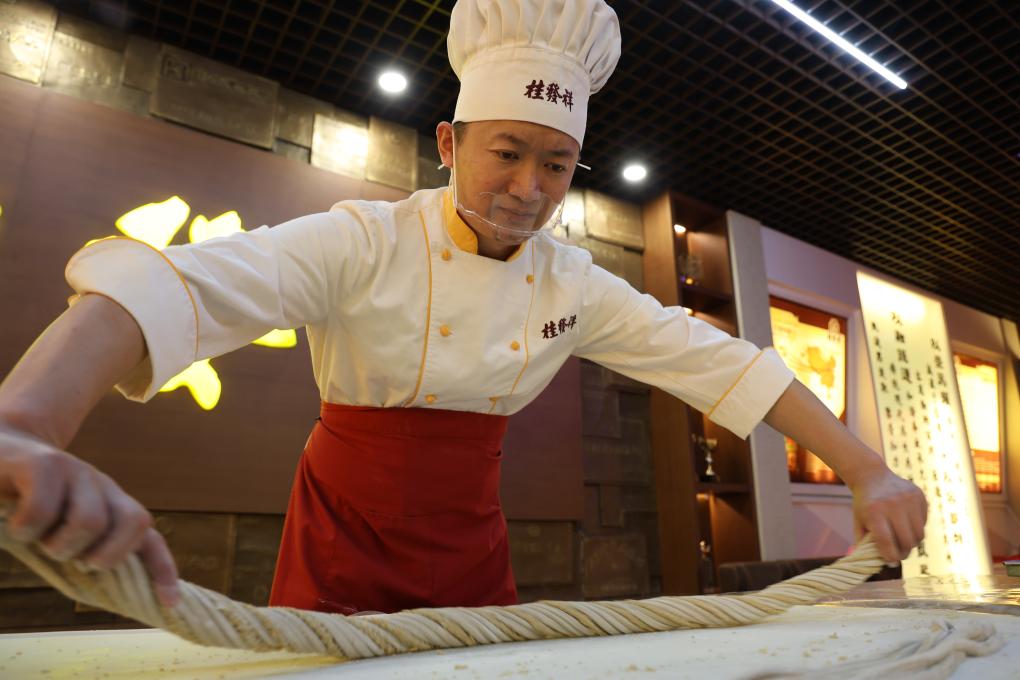 桂發祥十八街麻花始創於1927年,因當時店舖地處東樓十八街,故取名“十八街麻花”,作為商務部首批認定的中華老字號企業,也被譽為“津門三絕”之一。2014年,桂發祥十八街麻花製作技藝入選國家級非物質文化遺産代表性項目名錄。
