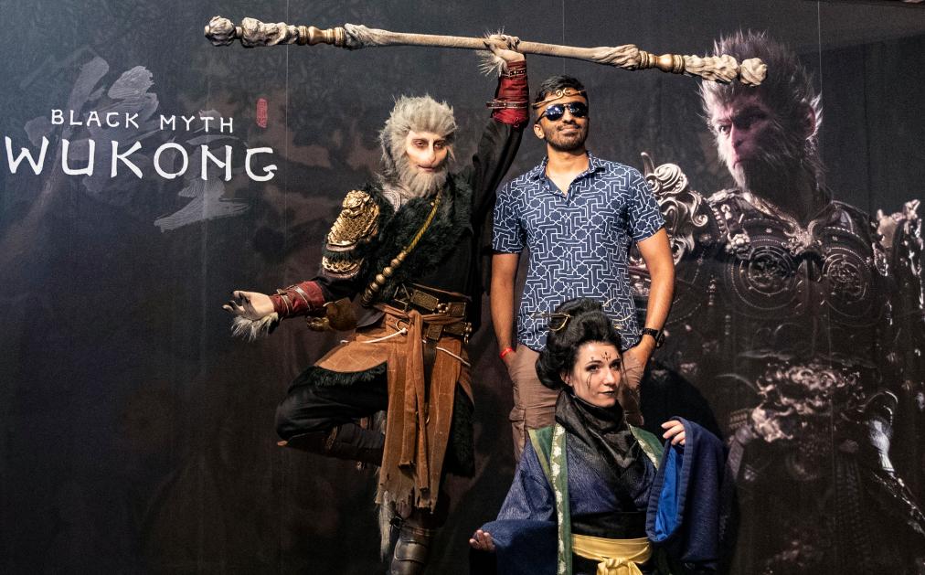2024年8月,人們在2024年科隆國際游戲展《黑神話:悟空》拍照區拍照。新華社記者張帆 攝