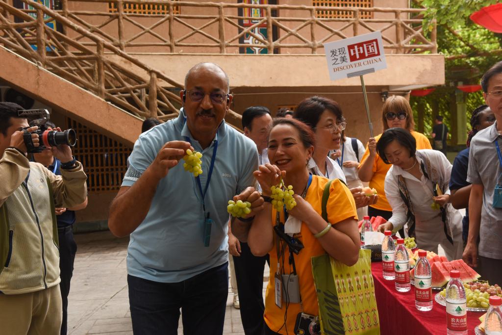 在吐魯番葡萄溝景區一處民宿家訪點,古樸精緻的傳統民居讓參訪團成員讚不絕口,他們與民宿主人坐炕話家常,感受當地居民勤勞質樸和追求美好生活的精神面貌。突尼斯共和國駐華大使館參讚本·亞古·阿代勒十分鍾愛這裡的美食。他説:“不管是在百姓家中還是城市街道,我都能感到新疆人民的樂觀豁達、和善友好,很高興受到邀請在這裡做客,這裡風景很美,但是居民的心更美,他們的好客精神讓我感到溫暖,我已經與他們成為朋友。”