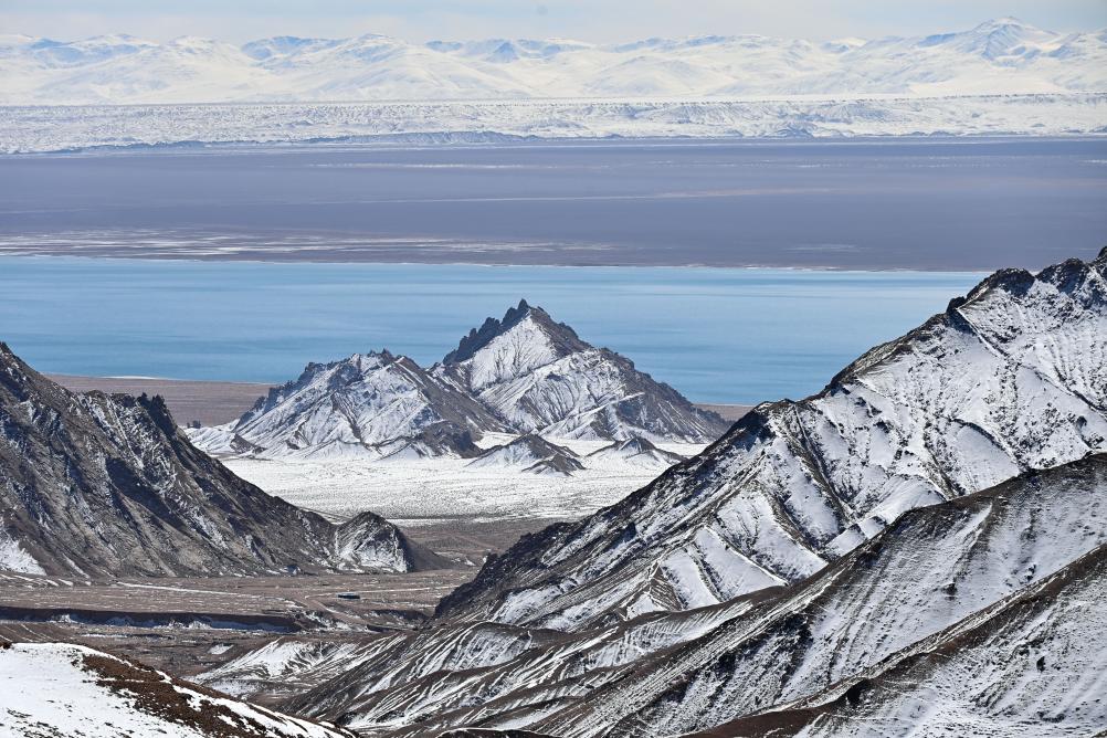 2023年10月18日在新疆阿爾金山國家級自然保護區拍攝的山峰和阿雅克庫木湖。新華社記者 李響 攝