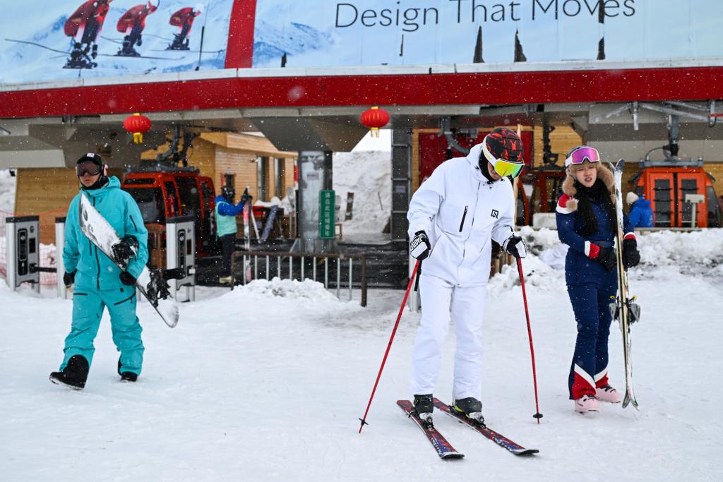 2024年3月8日,游客在位於禾木村的吉克普林國際滑雪度假區準備滑雪。新華社記者陳朔 攝