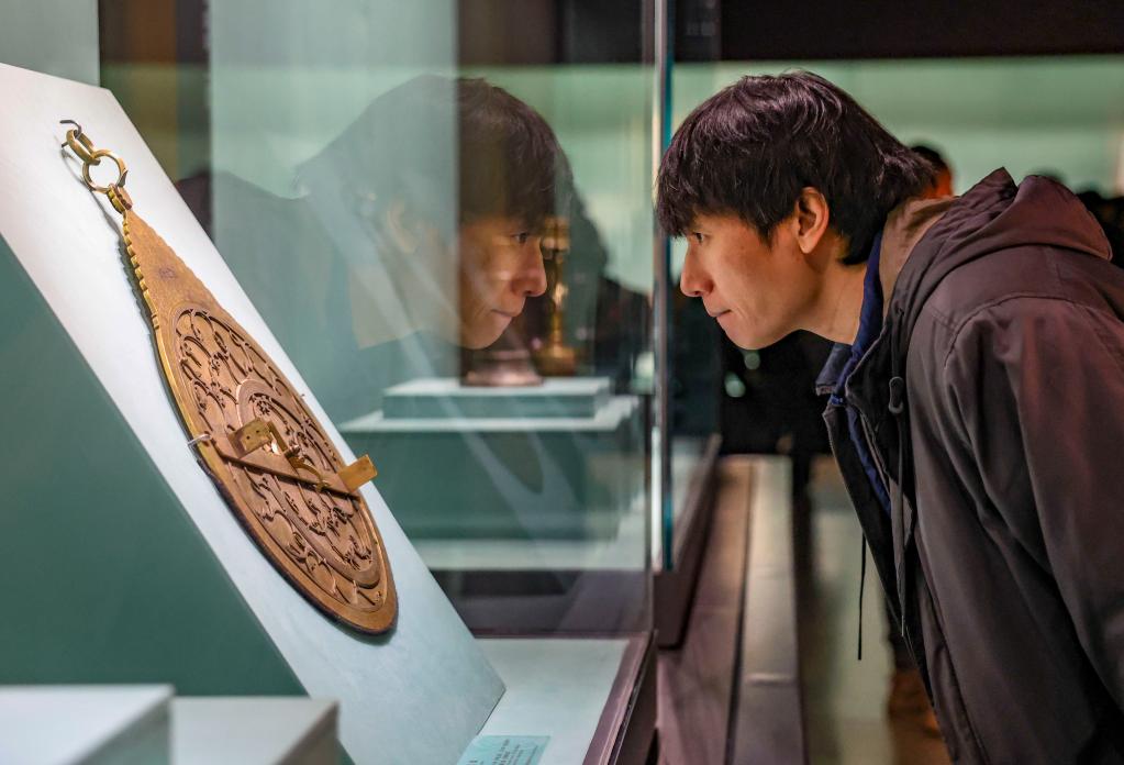 12月6日,參觀者在“古波斯的榮耀——伊朗文物精華展”觀看星盤。新華社記者 陳朔 攝