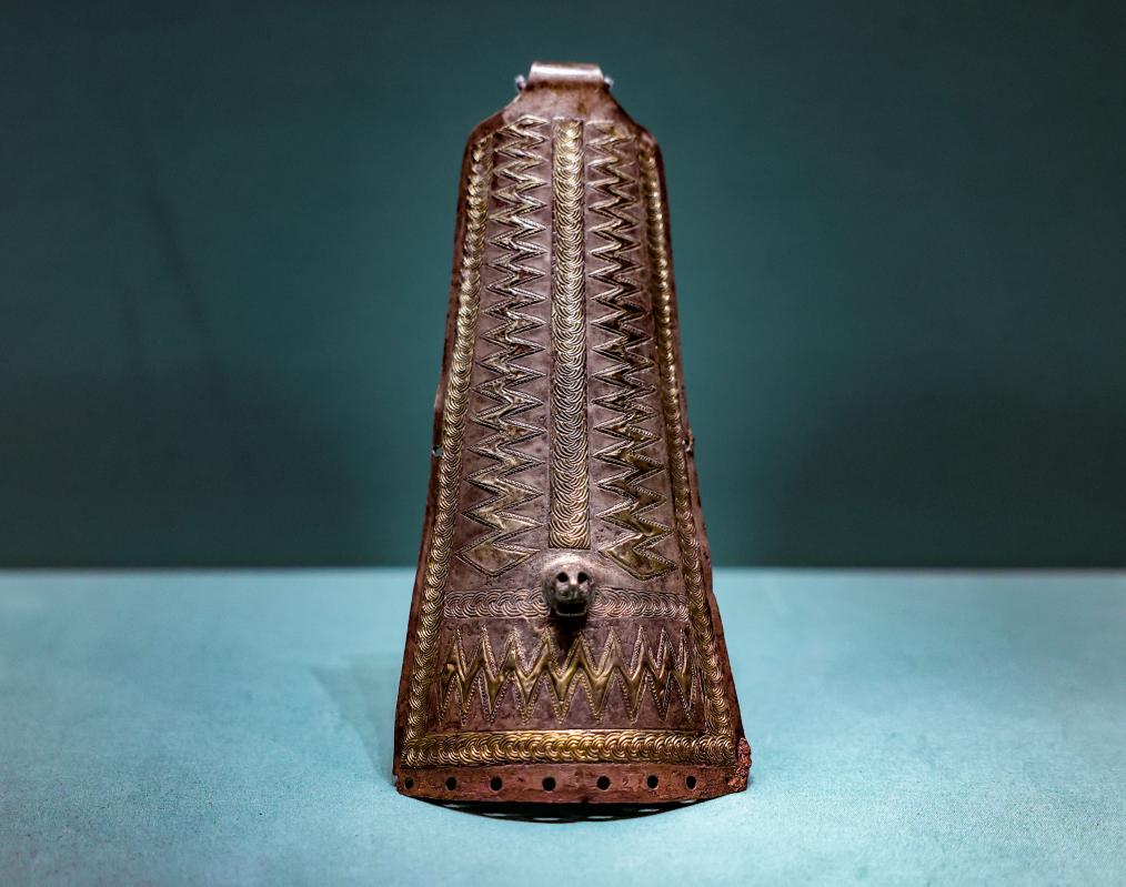 這是12月6日在“古波斯的榮耀——伊朗文物精華展”拍攝的鎏金銀飾板。新華社記者 陳朔 攝