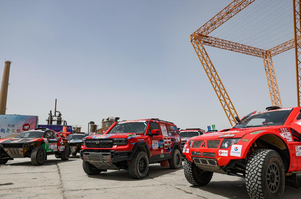 今年,環塔拉力賽加大對新能源賽車的支持和探索力度,首次設置新能源組。在當天進行的發車儀式和排位賽中,共有10輛新能源組賽車亮相。