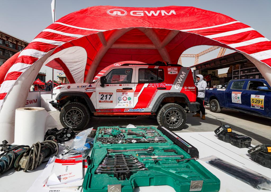 5月20日,長城坦克Hi4車隊的兩輛新能源組賽車(左一、左二)在發車儀式上。