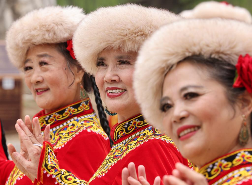 5月24日,在北京龍潭公園,幾位老年舞蹈愛好者在練習新疆民族舞蹈。這支由20多人組成的舞蹈隊有10位隊員年齡超過70歲。 “相對動作的準確性,我更注重講解舞蹈的情感表達,讓業餘愛好者了解每個動作表達的含義。新疆的民族音樂、舞蹈都很歡快,很容易融入,希望每個學習者在身體和精神上都得到享受,通過舞蹈的學習,讓更多人喜歡上新疆的民族文化。”這是熱合木土拉·阿馬努拉的教學理念。