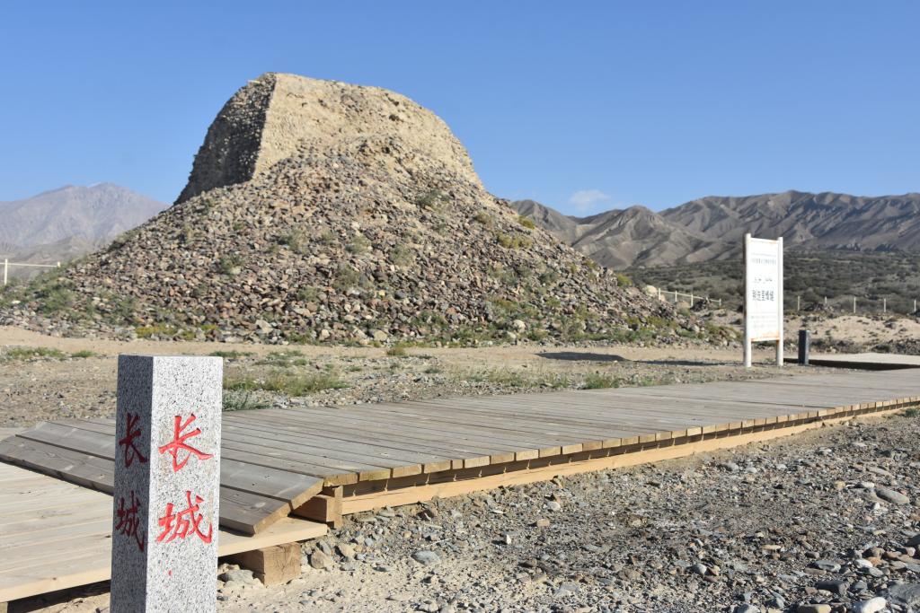 新疆阿克蘇地區烏什縣別迭裏烽燧長城國家文化公園內的別迭裏烽燧遺址,是我國境內至今現存的萬里長城防禦體系最西端的烽火&,被稱為“中國長城最西烽”(2024年9月23日攝)。新華社記者 顧煜 攝