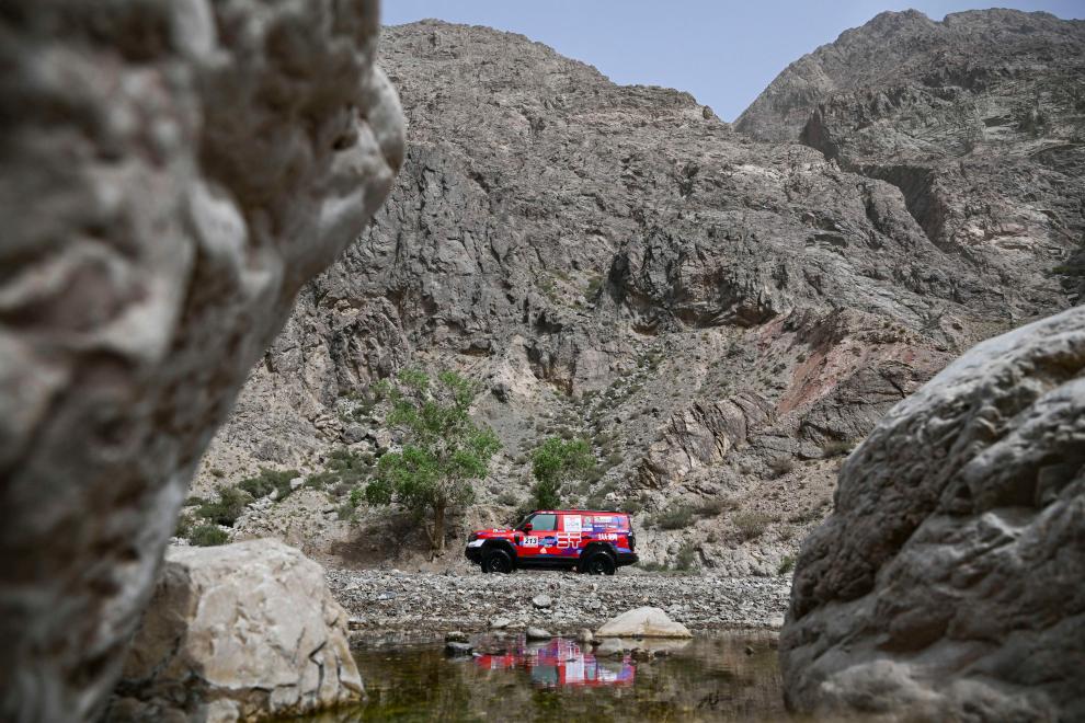 5月23日,縱橫G700車隊車手孟斌、領航員李智峰駕駛賽車在比賽中。當日,2025中國環塔國際拉力賽第三賽段比賽在新疆阿克蘇地區柯坪縣進行。該賽段長330多公里,以狹窄涉水峽谷、戈壁等地形地貌為主。新華社記者 胡虎虎 攝