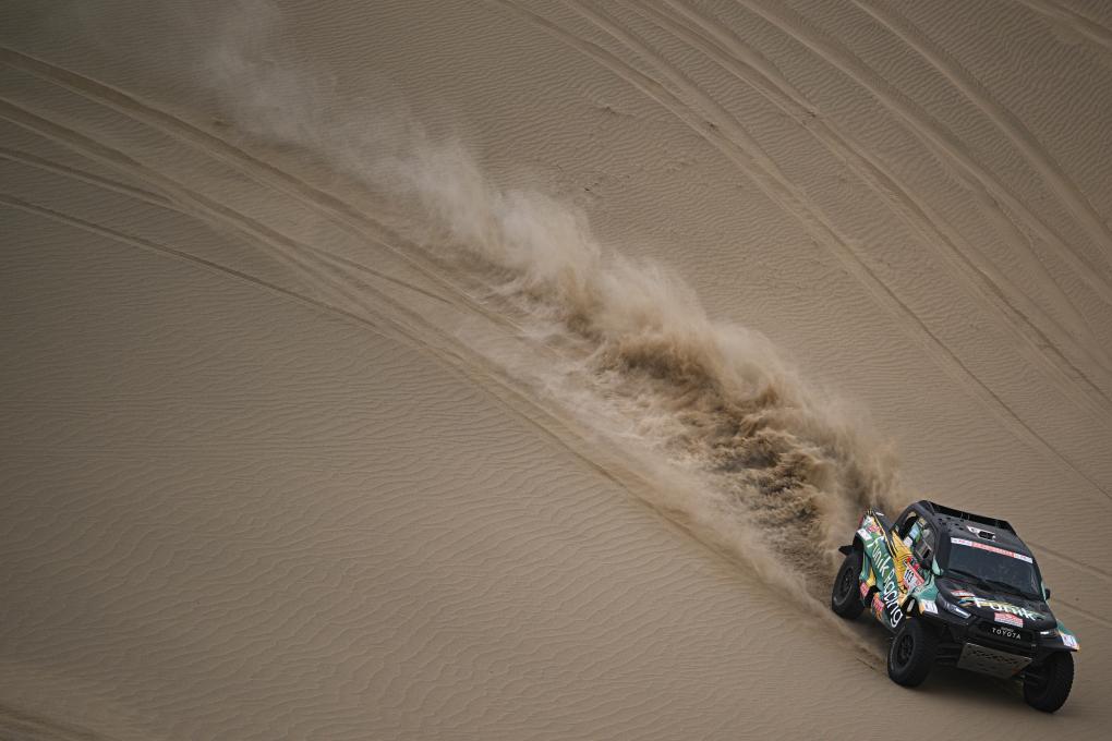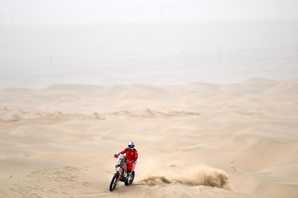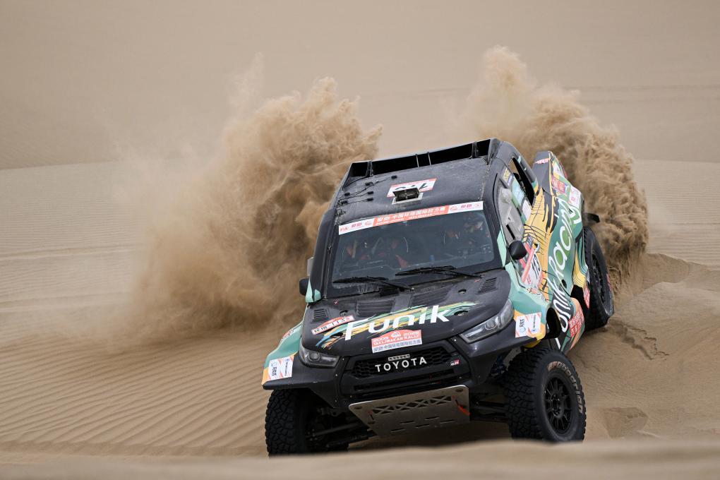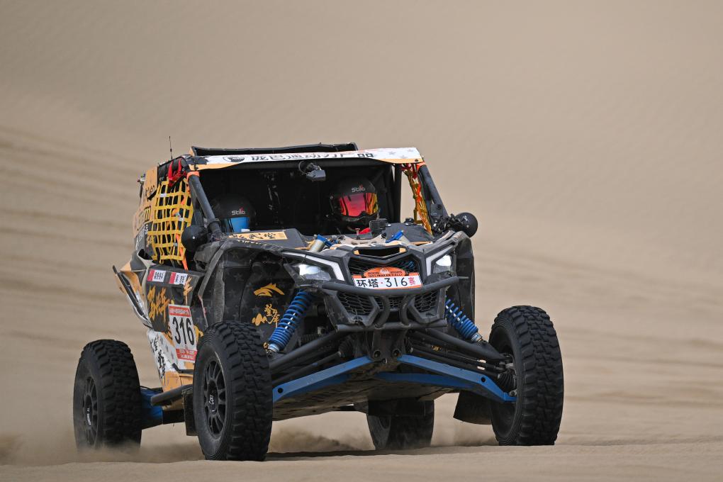 當日,2025中國環塔國際拉力賽第七賽段在新疆喀什地區葉城縣進行。該賽段長82公里,以“沙漠+戈壁”的複合地形為特色,是今年最新啟用的賽段。新華社記者 辛悅衛 攝