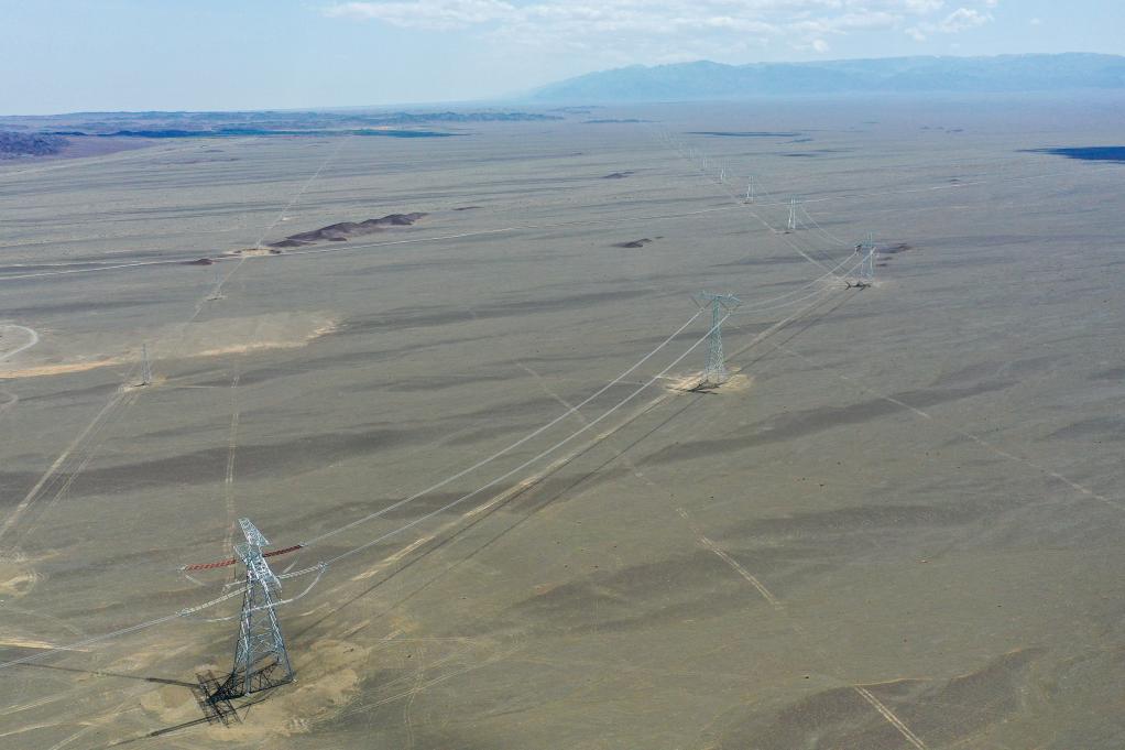 這是6月10日拍攝的哈密—重慶±800千伏特高壓直流輸電配套線路(無人機照片)。