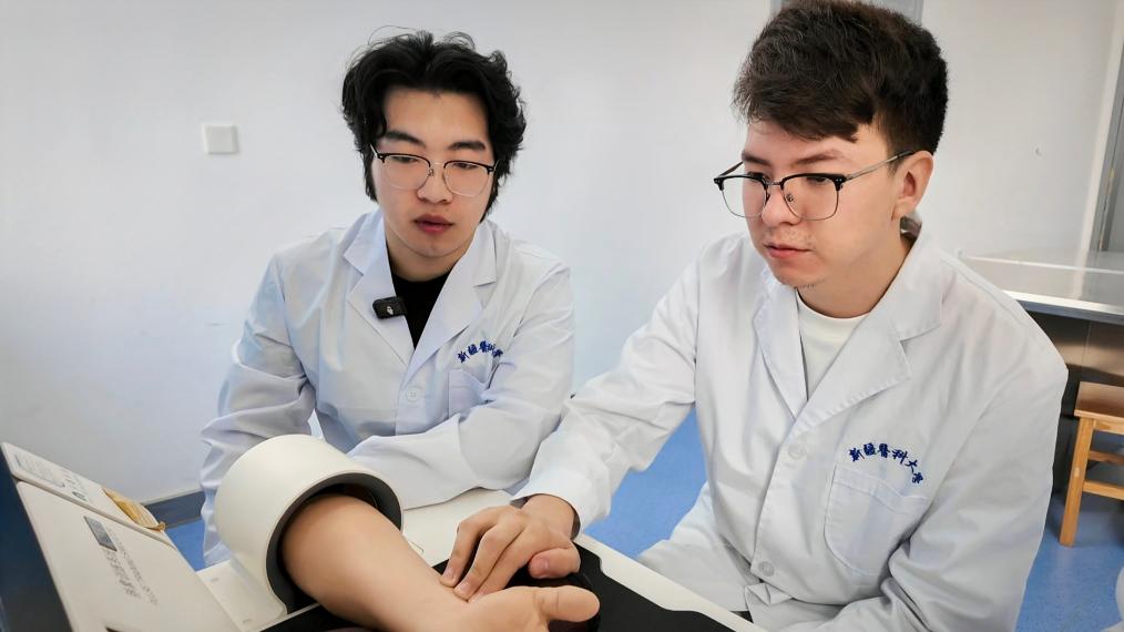 這份好奇促使卡力別克産生了學習中醫的念頭。他&&了在中國學醫的哈薩克斯坦學長,他們向卡力別克推薦了新疆醫科大學。修讀完語言預科課程後,卡力別克最終如願,成為新疆醫科大學中醫學專業的本科插班生,和中國學生同堂學習。