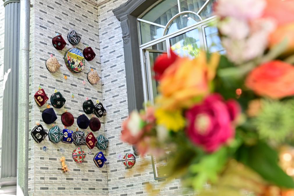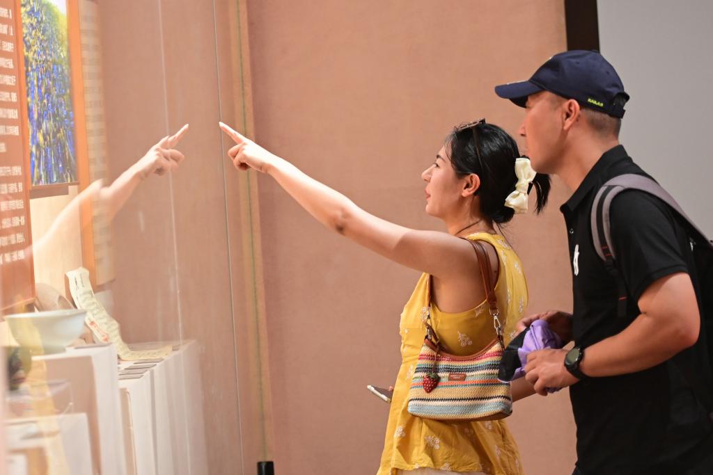 2025年7月24日,游客在新疆伊犁哈薩克自治州伊寧市伊犁老城喀讚其文化旅游區石榴花展覽館參觀。丁磊 攝