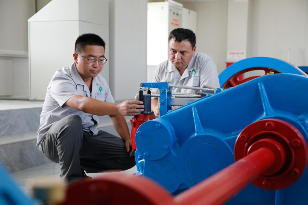 8月6日,新疆塔裏木河流域幹流管理局下游管理處大西海子水庫管理站工作人員對啟閉機制動器(剎車)進行檢查。