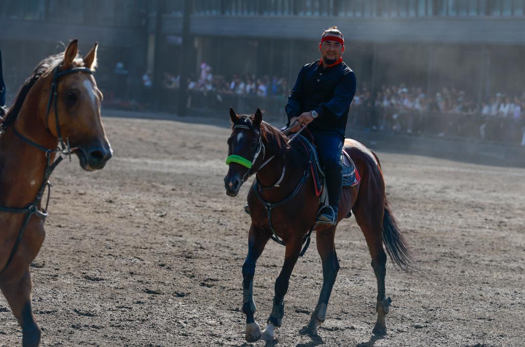 這名馴馬師名叫希爾扎提·奴魯木,今年30歲,目前是新疆野馬集團汗血馬基地的馴馬師,帶領整個馬隊每日訓練、演出,將自己熱愛的馬文化介紹給大家。