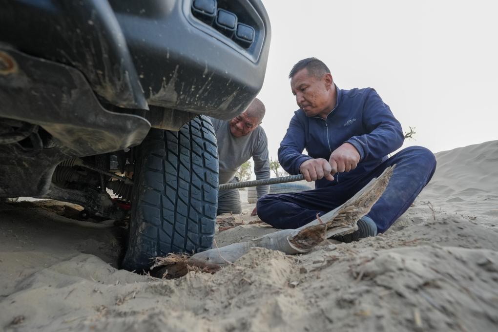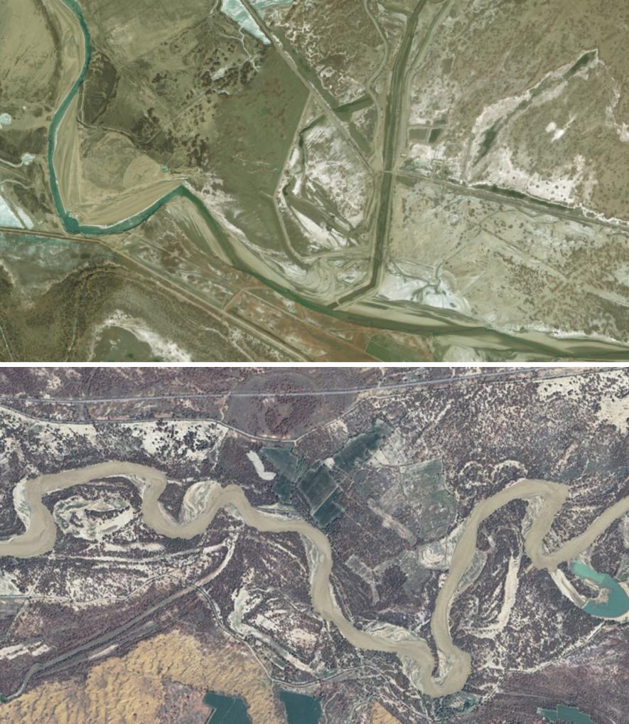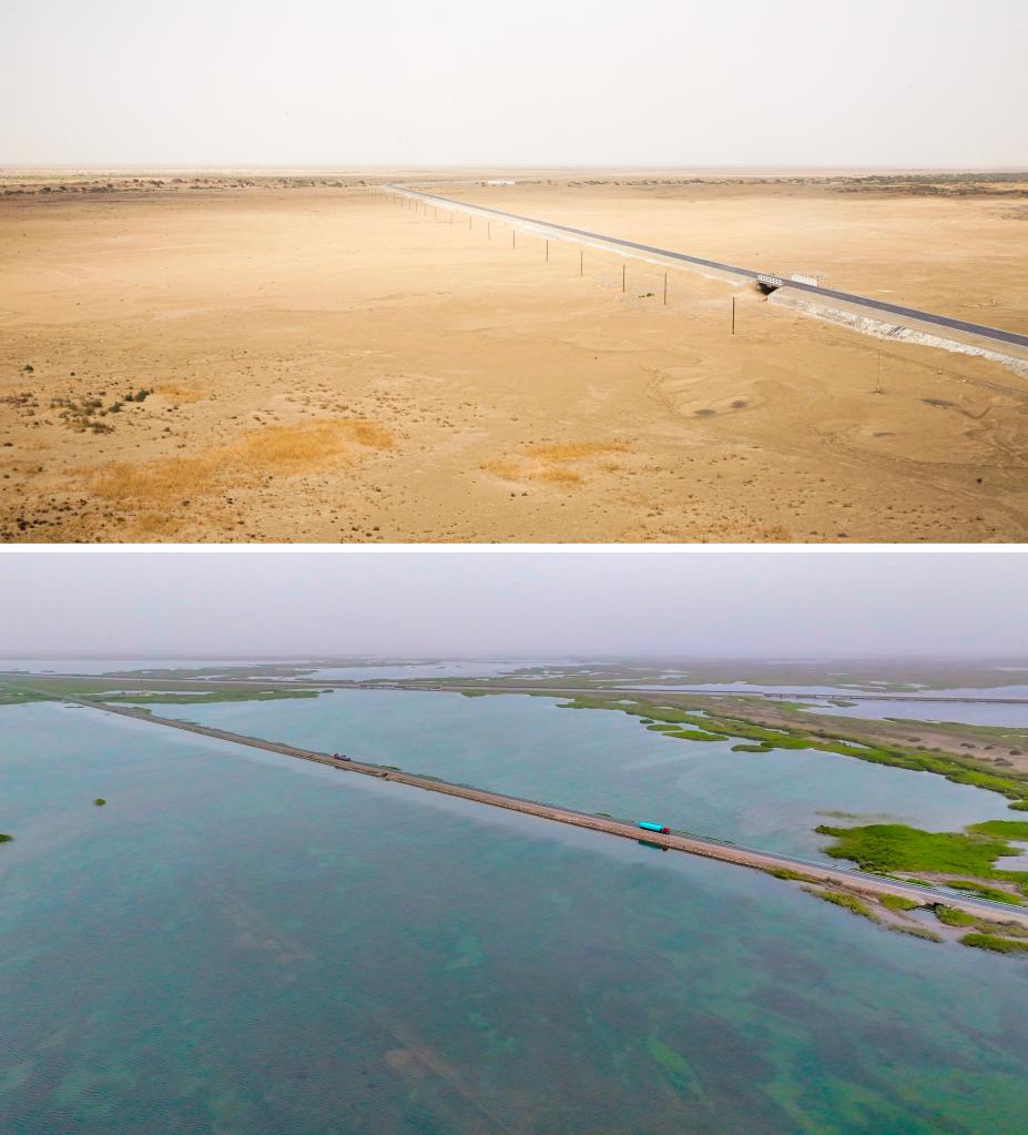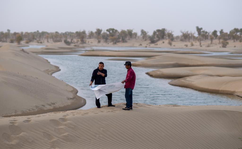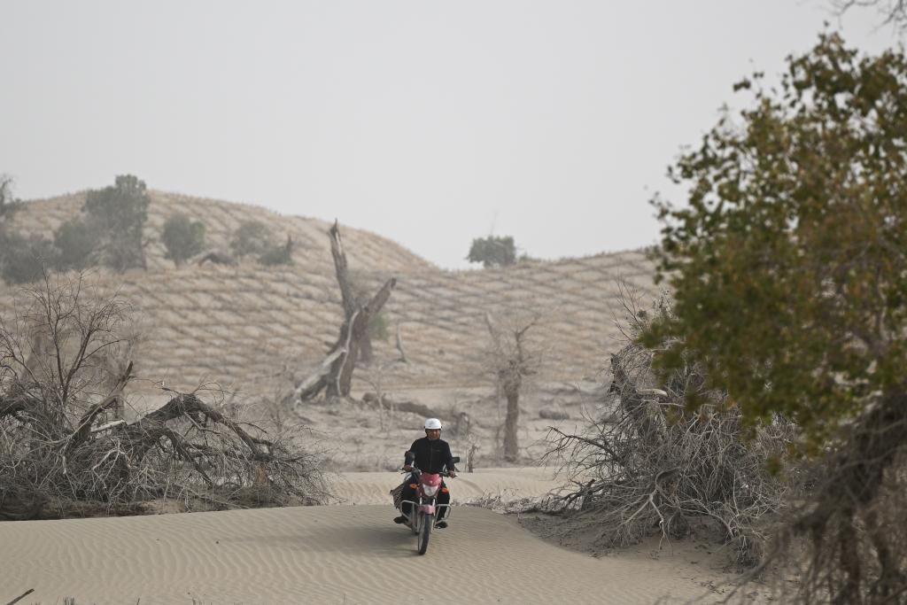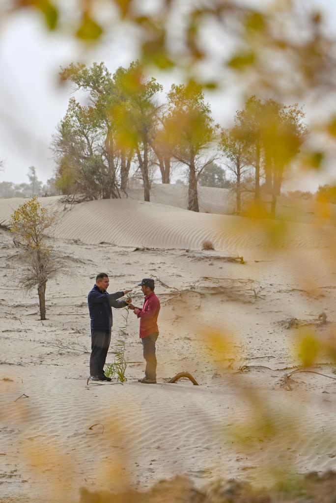 塔裏木河沿塔克拉瑪幹沙漠北緣蜿蜒
