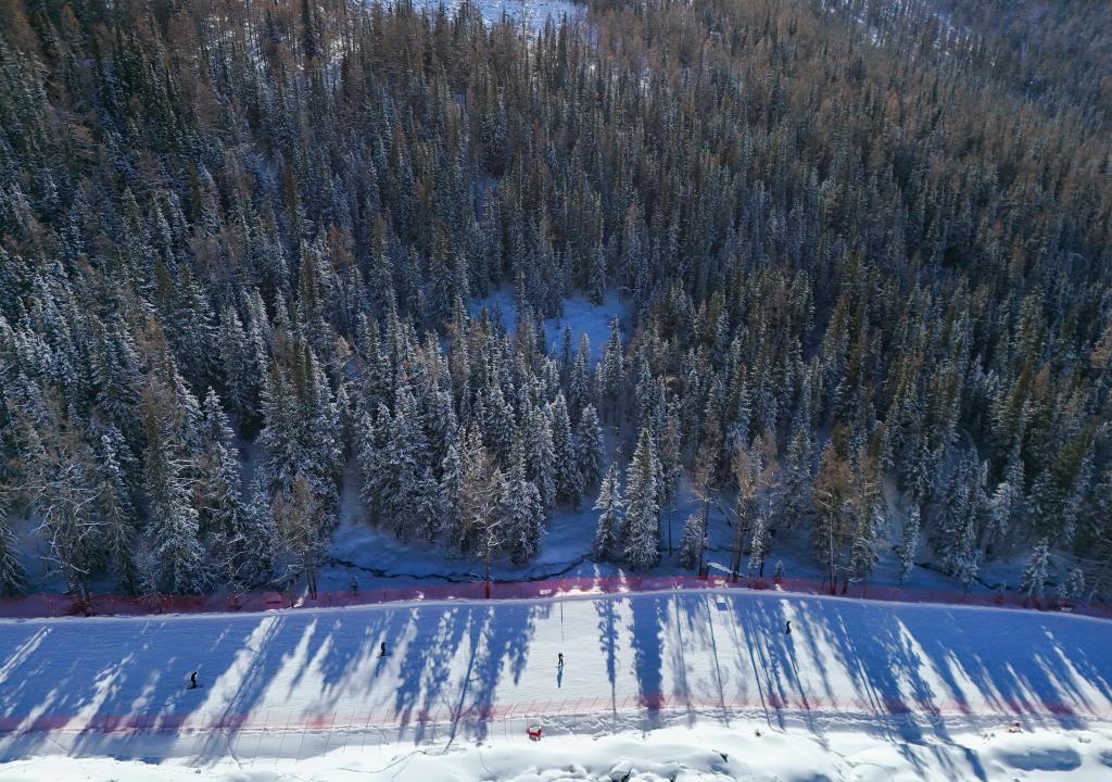 這是1月17日拍攝的新疆阿勒泰可可托海國際滑雪度假區(無人機照片)。新華社記者 胡虎虎 攝