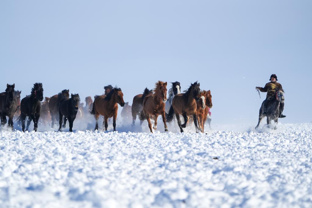 牧民馬蹄踏碎雪域寂靜