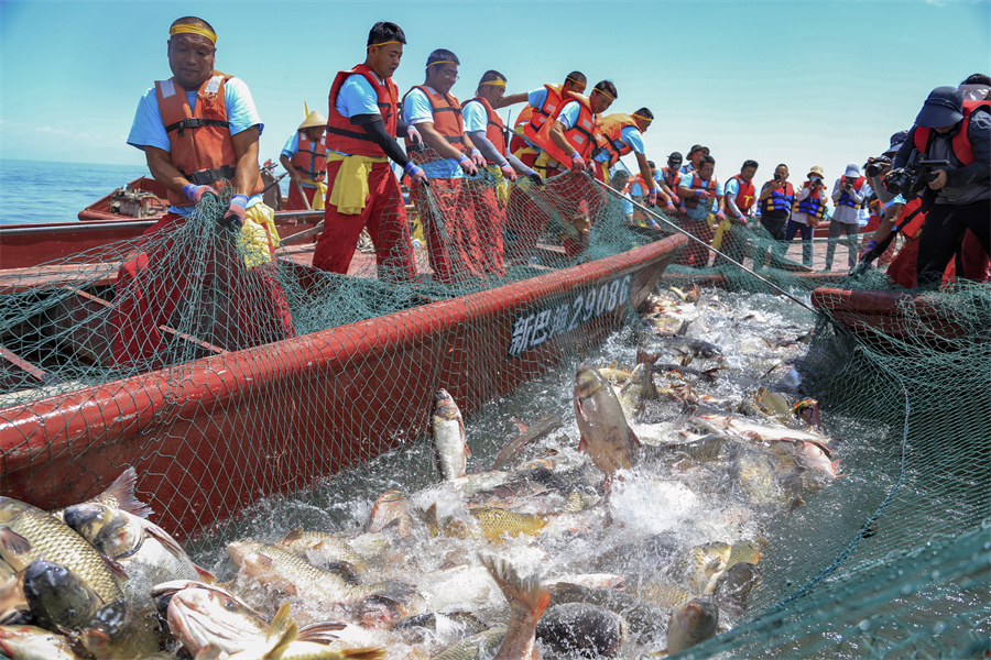 為確保博斯騰湖漁業資源可持續發展,每年3月1日至6月20日為禁漁期。禁漁期結束後,當地都會舉行盛大的開湖儀式,舉辦“頭魚”拍賣會。各地游客和養殖戶齊聚湖邊,歡慶豐收,享用美食。