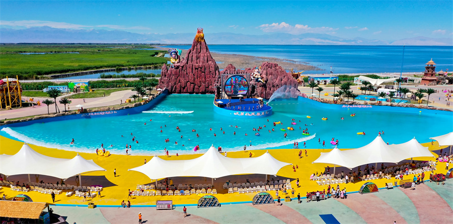 博斯騰湖開啟夏日清涼模式,游客體驗水上樂趣。年磊 攝