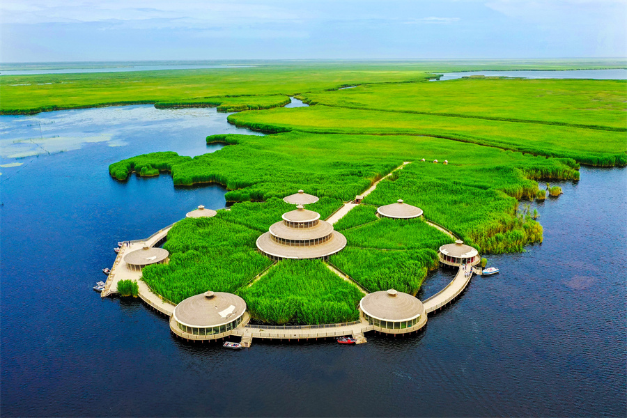 初秋,位於新疆維吾爾自治區巴音郭楞蒙古自治州博湖縣境內的博斯騰湖萬畝蘆葦濕地水草豐美,蘆葦隨風搖曳,藍天與白雲相映成趣,白鷺、野鴨、天鵝……自由翱翔在湛藍的湖面,自然之美與生態之美有機結合,勾畫出一幅精美畫卷。